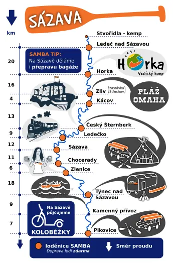 - Před plavbou je dobré se podívat na aktuální sjízdnost Sázavy.