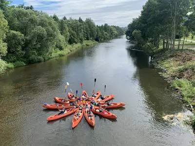 - zapůjčení vodáckého vybavení (stabilní kanoe Samba nebo 4 a 6místné nafukovací rafty Colorado, pádla, certifikované vesty a barely)