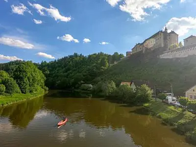 Okolí hradu je jako stvořené pro procházku nebo projížďku na koloběžkách, které vám rádi zapůjčíme v naší loděnici u mostu. K Hradu sice musíte s koloběžkou do kopce, ale o to je pak lepší svezení dolu.