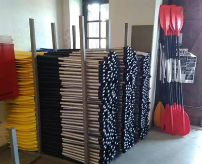 Jakou velikost pádla si vybrat? V půjčovně máme k dispozici 3 základní velikosti dospělých pádel a několik velikostí dětských pádel. Obecně platí pravidlo, že výška pádla by měla být mezi vodákovými rameny a bradou. Kormidelník obvykle potřebuje pádlo o něco delší než háček, aby se mu lépe loď ovládala.