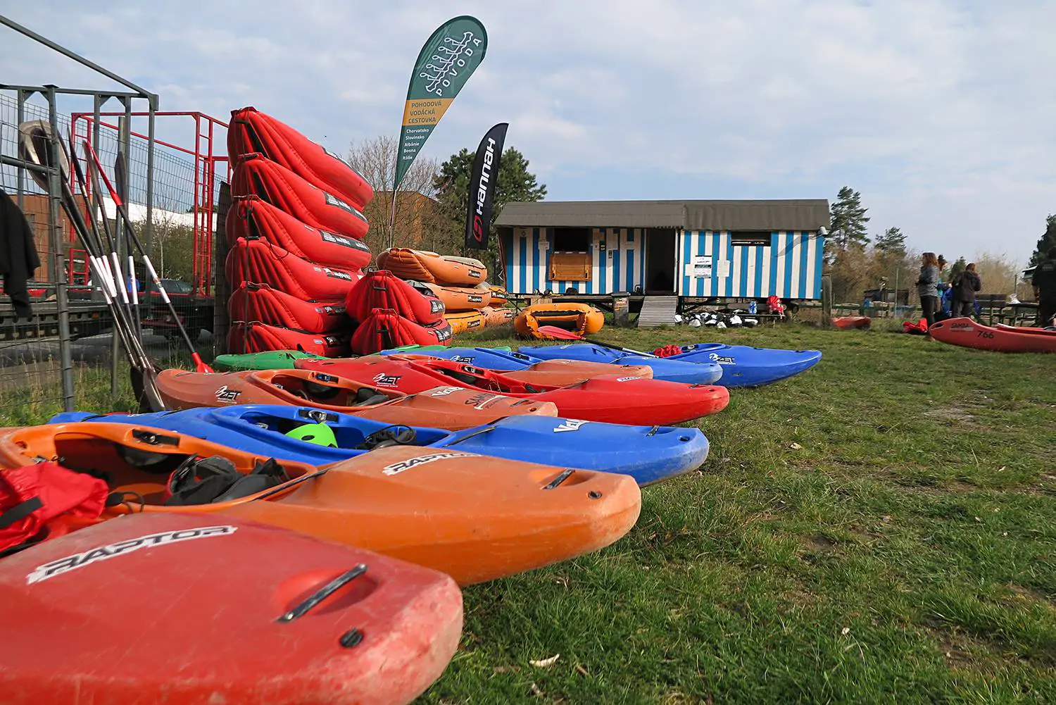 - kajak (+pádlo, helma, špricka) 200 Kč