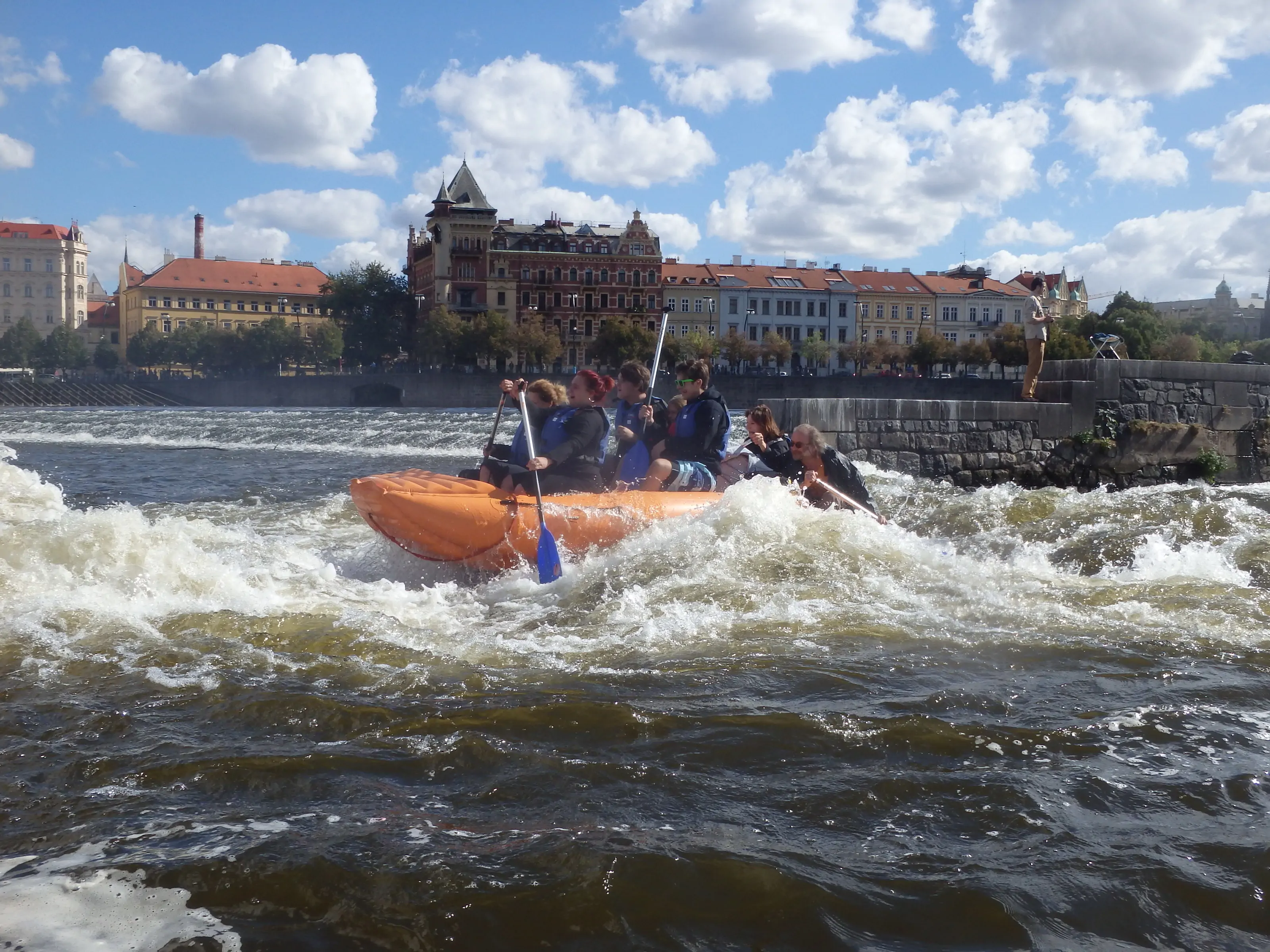 Závod Napříč Prahou – Přes 3 jezy je tradičním pražským vodáckým závodem s historií sahající až do roku 1939. Trať závodu je dlouhá asi 6,5 říčních kilometrů se startem na Císařské louce a s cílem na ostrově Štvanice. Pro ty, co zrovna netouží závodit na pramici je připraveno volné splutí. Plavba kolem Vyšehradu, Národního divadla, pod Karlovým mostem a zakončená na Štvanici určitě stojí za to. Přes Prahu můžete plout na kanoi, kajaku, nafukovací kanoi nebo raftu. Naše kanoe Samba se na záludných pražských jezech určitě osvědčí.